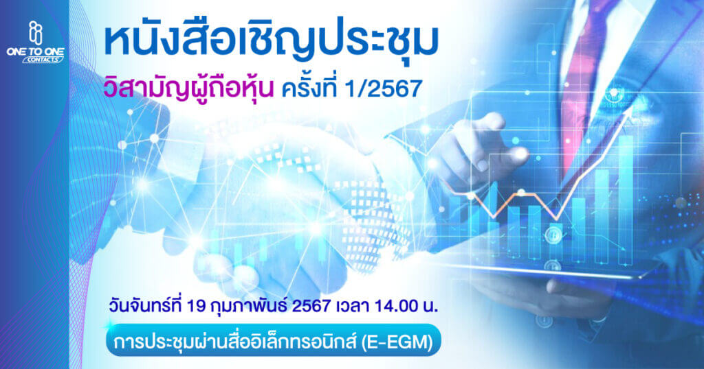 บริษัท วันทูวัน คอนแทคส์ จำกัด (มหาชน) จัดประชุมวิสามัญผู้ถือหุ้นครั้งที่ 1/2567 ผ่านสื่ออิเล็กทรอนิกส์ (E-EGM)